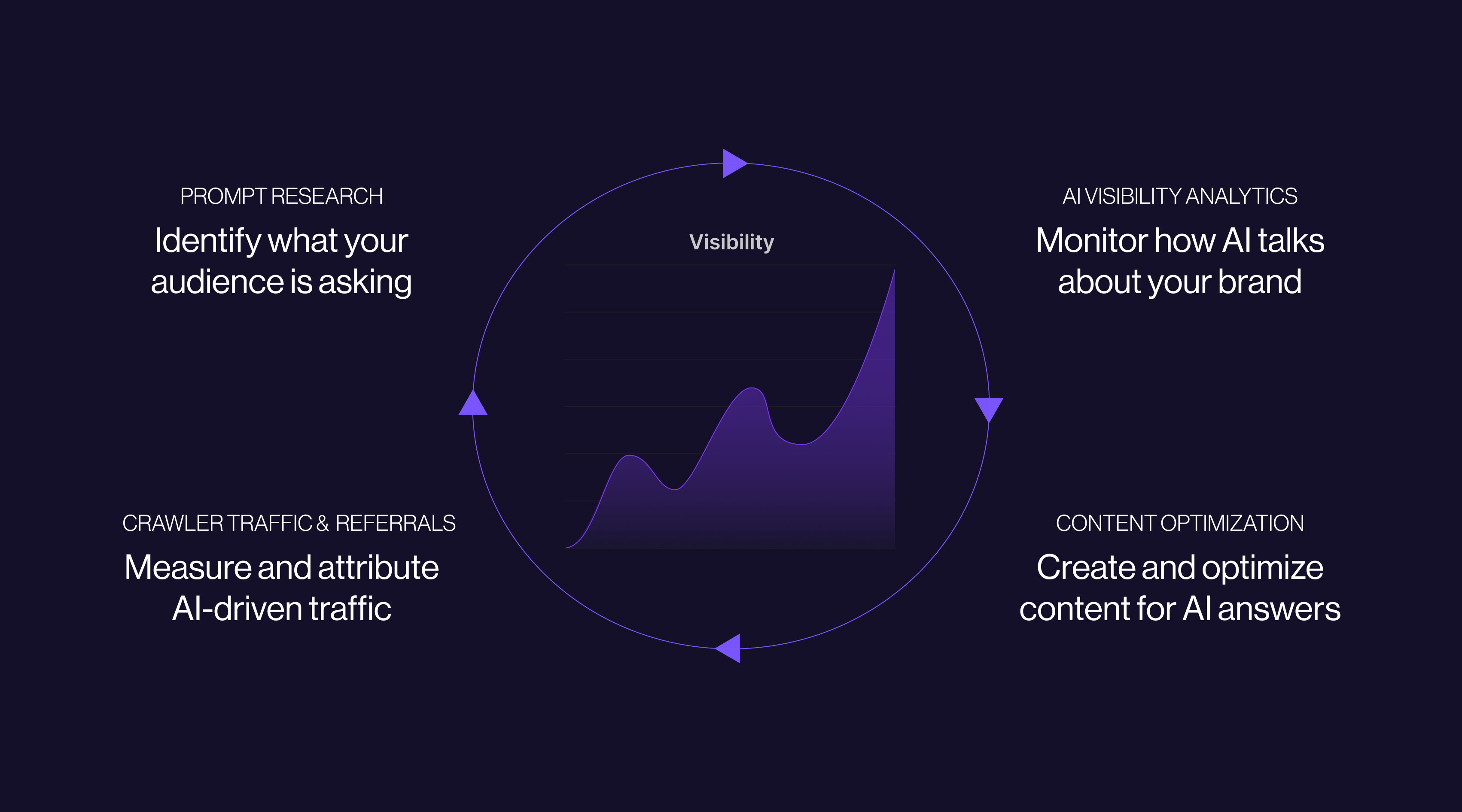 MetricWhat It MeasuresWhy It MattersVisibility Score% of relevant prompts where your brand is mentioned across target AI platformsCore AI presence indicator. Answers whether AI systems associate your brand with your category.Citation Share% of AI citations that reference your domain as a sourceMeasures retrieval authority. High citation share means AI treats your content as a credible source.Share of VoiceYour brand's share of total mentions relative to named competitors in AI answersCompetitive positioning. Not just whether you appear, but how prominently relative to alternatives.Source Mention RateHow often your brand appears across third-party sources that AI platforms citeEcosystem health. A low rate signals over-reliance on owned content and a weak off-site presence.SentimentWhether AI describes your brand positively, negatively, or neutrally when it appearsBrand risk indicator. Visibility without positive framing does not drive buyer consideration.Positioning AccuracyWhether AI descriptions align with your intended category positioning and messagingStrategy signal. Misaligned AI descriptions create wrong-fit traffic and confuse buyers.